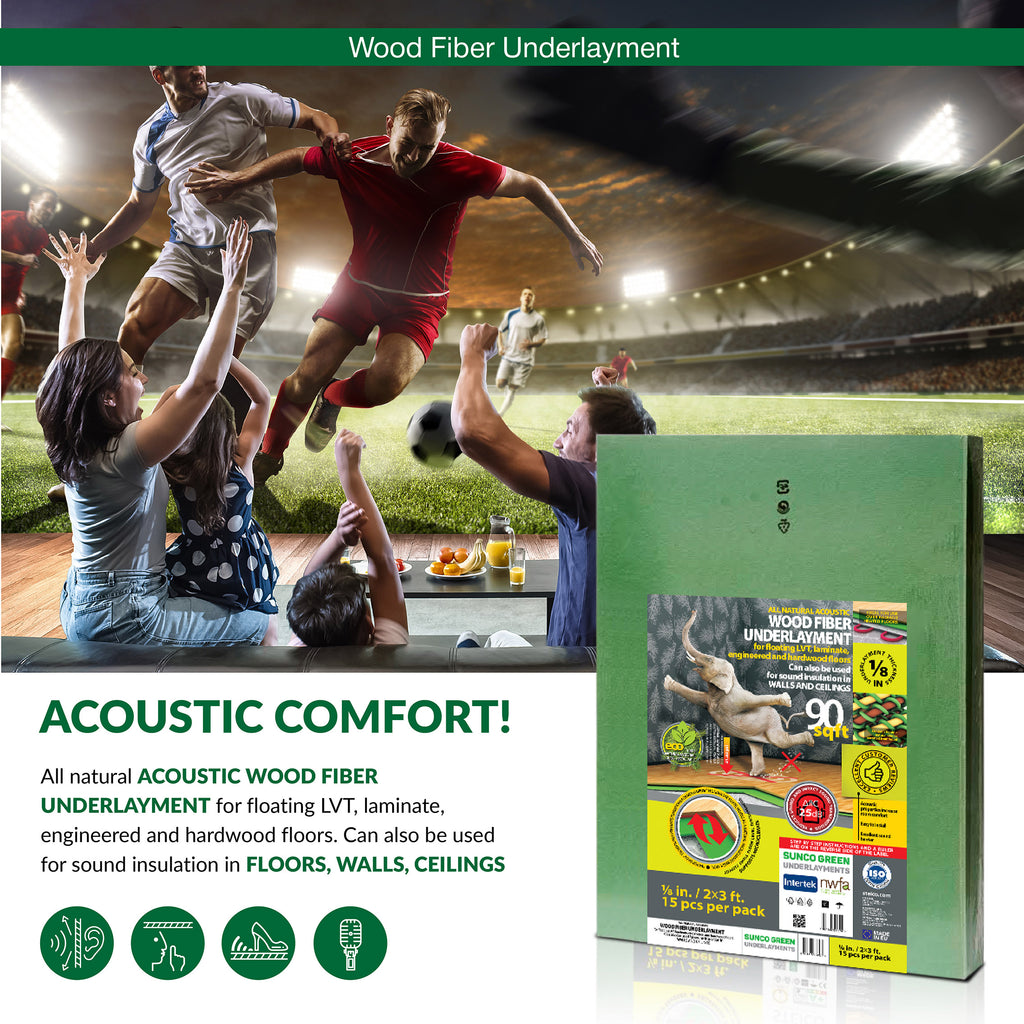 ALL-NATURAL ACOUSTIC WOOD FIBER UNDERLAYMENT FOR FLOATING LVT, LAMINATE, ENGINEERED AND HARDWOOD FLOORS
